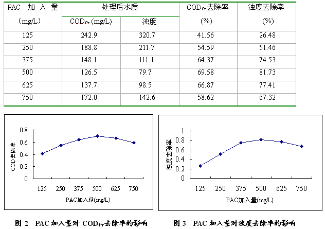 表3 PAC聚合氯化鋁加入量對CODCr、濁度去除率的影響